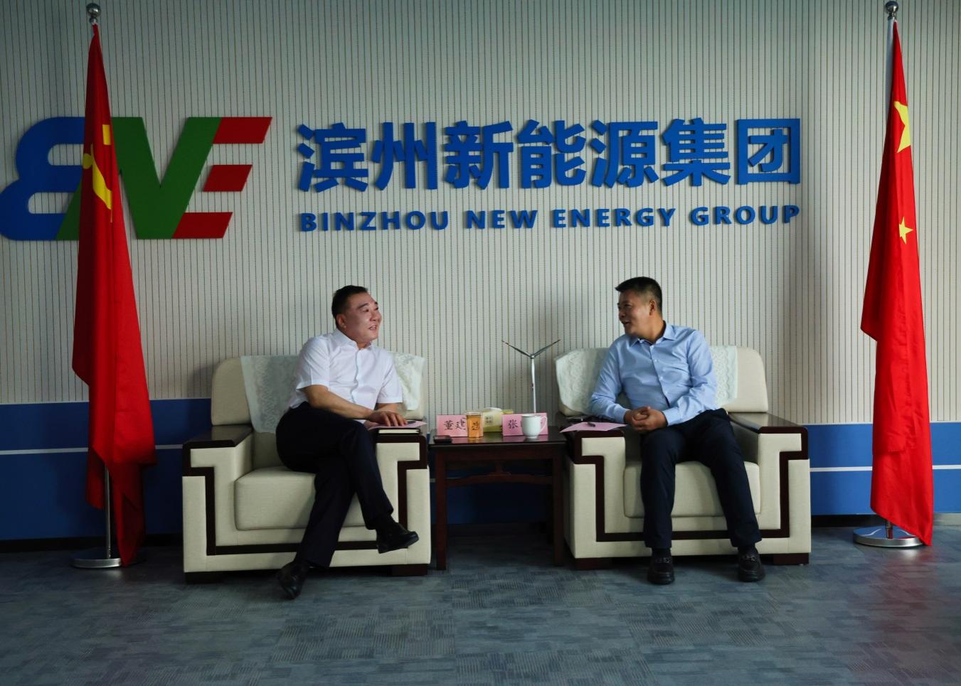 4月26日下午,远景能源中部公司总经理张晓峰一行到滨州新能源集团就合作事宜开展座谈交流。集团党委书记、董事长董建忠出席会议。